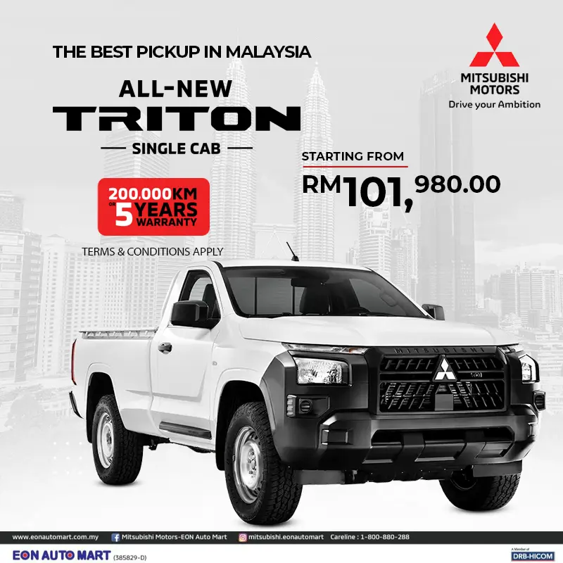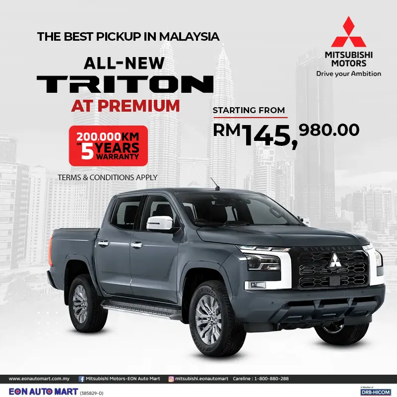 EON Auto Mart Sdn Bhd, established in October 2003, is a subsidiary of EON Berhad under the DRB-HICOM Group. In 2005, EON Auto Mart became the first authorised dealer of Mitsubishi Motors Malaysia. To date, we have 9 branches nationwide represented in most major cities, making EON Auto Mart the Widest Malaysian Mitsubishi Motors dealership. We serve 9 locations throughout Malaysia with 7 outlets operate as 3S centres. Our authorized Body & Paint located in Kota Damansara, Ampang, Kota Kinabalu and Johor Bahru. We also have Independent Service Outlet  located in Pengerang. The core vehicle models offered are Triton, Outlander, ASX and Xpander.